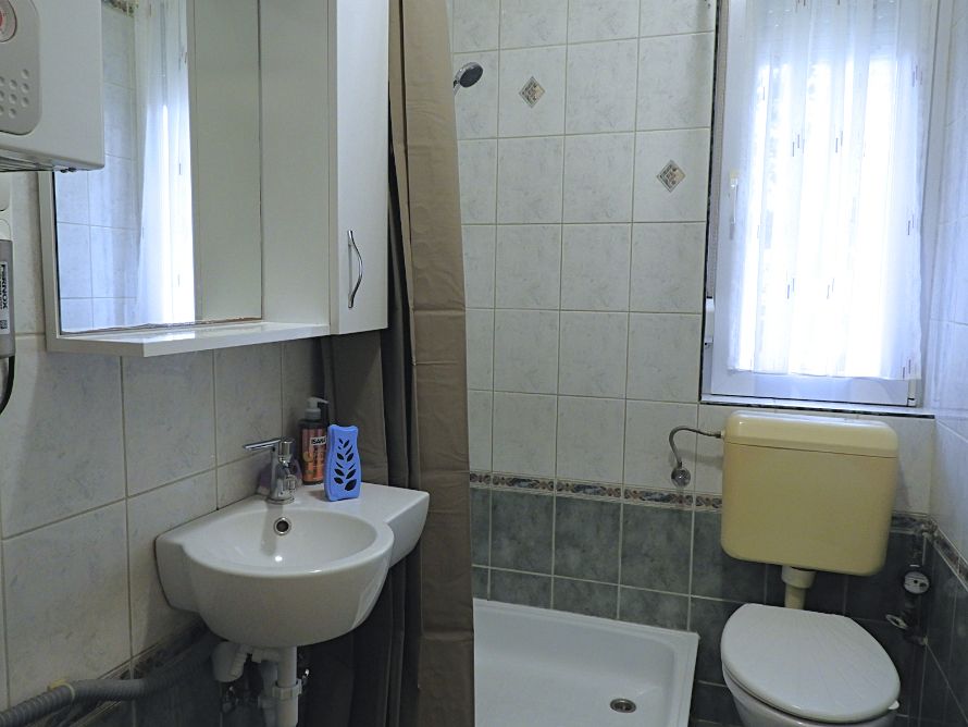 A fürdő és a wc egy helyiségben található.