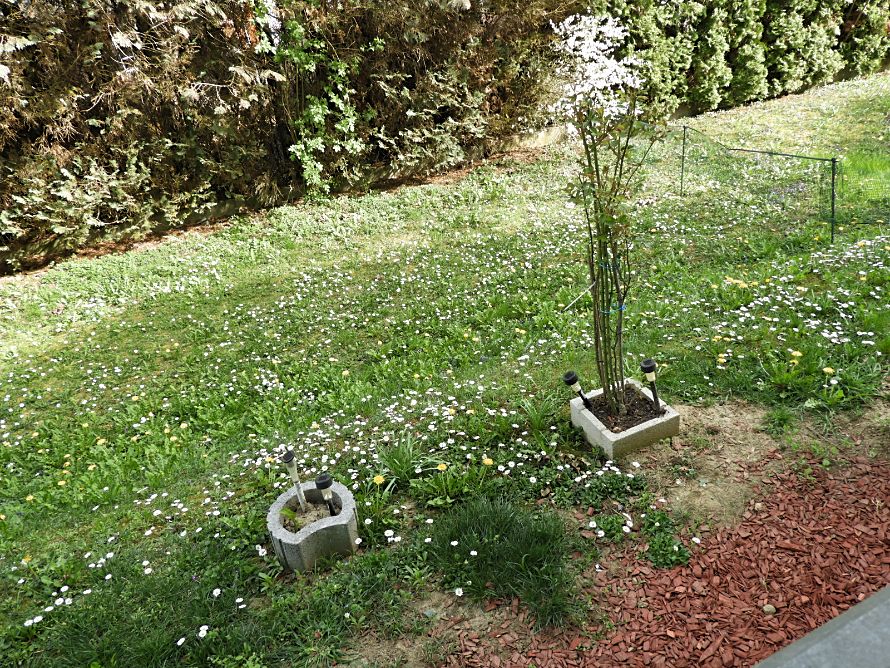 A lakás ablakai alatt elhelyezkedő - részben fedett - zöldterület kényelmesen, zavartalanul használható. A kertben nincs átmenő gyalogos forgalom: nyugodt kikapcsolódásra, pihenésre, sziesztázásra alkalmas. A kertbe a lépcsőházi tárolón keresztül, kulccsal juthatunk ki.
